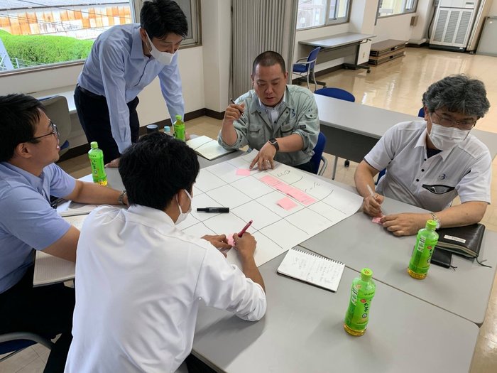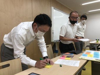 同社は住宅などの内装工事やインテリア・カーテンの販売を行っている企業ですが、施工スタッフ、インテリアスタッフから総務部長まで社員総出で、業界のデジタル変革への対応と新しい提供価値の創造についてみんなでディスカッションしました。