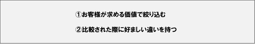 比較された際に好ましい違いを持たなくてはなりません。これが差別的優位点です。