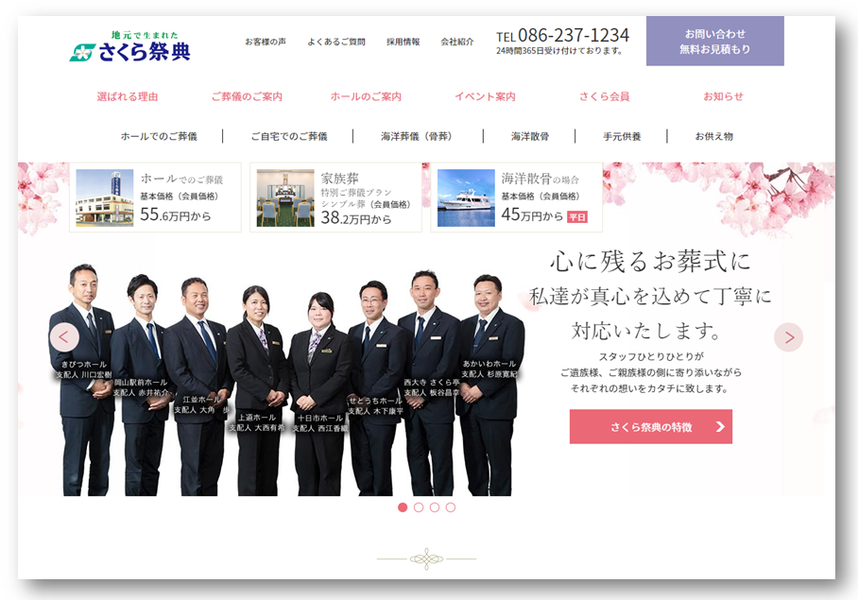 「選ばれる理由」を明確にした、さくら祭典ホームページ:http://www.sakura-saiten.co.jp/